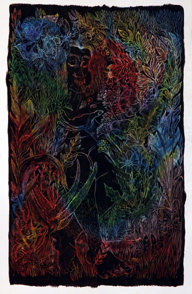 Dessin gratté sur papier arche. Crédit photo Pilar Macias
